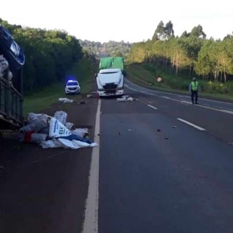 El informe policial indicó que el accidente se produjo en el kilometro 1414 entre un camión Dodge Diésel 800, al mando de Raúl M, quien se dio a la fuga y transportaba mandioca. Este camión habría sido impactado en la parte trasera por un camión Mercedes 1634 conducido por Romindo, R. 50 años.