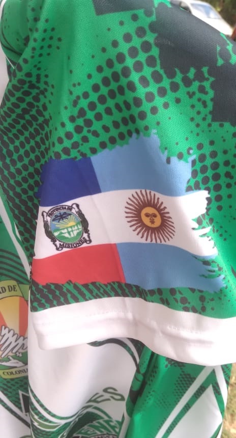 La camiseta tendrá en la manga una bandera fusionada, la de Misiones y Argentina, también la estampa del santo patrono de Victoria, «San Antonio».