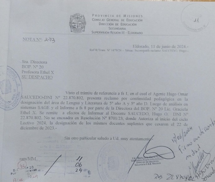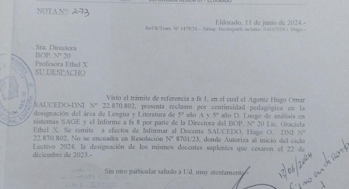 La denuncia de Saucedo ha sido elevada al Consejo General de Educación, donde se espera que «Asuntos Legales» actúe con diligencia y responsabilidad para revisar y sancionar esta situación.