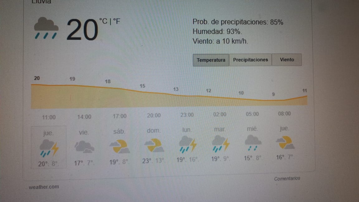Así se presenta el tiempo en la zona norte, sobre todo en la ciudad de Eldorado, donde continúa la inestabilidad. Para los próximos días (viernes, sábado, domingo) desciende la temperatura. La semana que viene, se aguarda lluvias con descargas eléctricas.