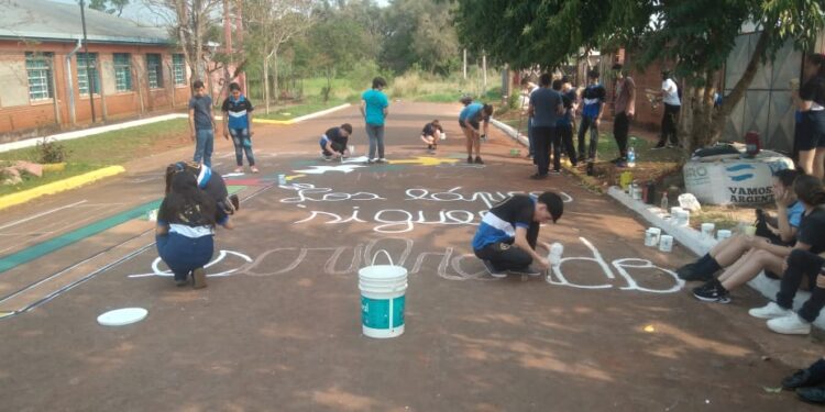 Alumnos de 5° B de la CEP N° 16 realizaron una pintada en la calle 16 de septiembre, en conmemoración de La Noche de los Lápices, como parte de las actividades de la semana del estudiante. La profesora Margarita Riquelme, responsable de la iniciativa, explicó que estas acciones continúan el trabajo que comenzó el lunes, en el marco del Día de los Derechos de los Estudiantes Secundarios.