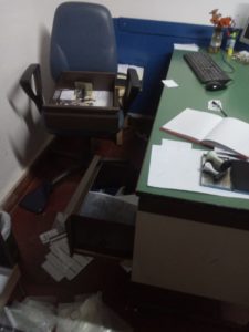 El hecho ocurrió en la madrugada de este miércoles, los malvivientes ingresaron por la parte de atras, violentando el portón y se llevaron la suma cercana a los 20 mil pesos y otros elementos de las oficinas.