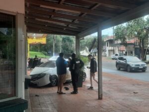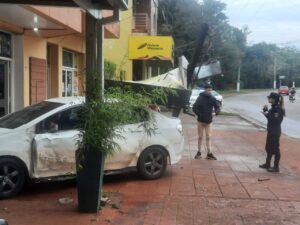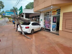 En horas de la mañana de este domingo, un vehículo que transitaba en sentido este – oeste por avenida San Martin de esta ciudad a la altura 1263 del km. 8, impactó contra la pared de un local comercial.