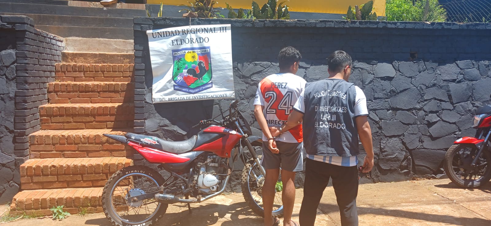Luego de varios días de trabajo de campo, personal encubierto detectaron en la ciudad de Eldorado, la presencia de tres motocicletas dudosas, por lo que dos de ellas fueron interceptadas, además dos conductores quedaron arrestados por no contar con ningún tipo de registro de los rodados, así mismo no poseían sus documentaciones personales.