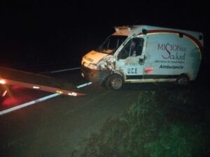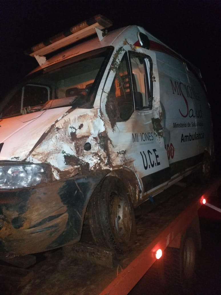 La ambulancia pertenece al Hospital de Puerto Iguazú. Según trascendió, habria reventado un neumático delantero, hizo que perdiera el control y despistó. El chofer de nombre Gustavo L. fue derivado al Hospital Samic de Eldorado.